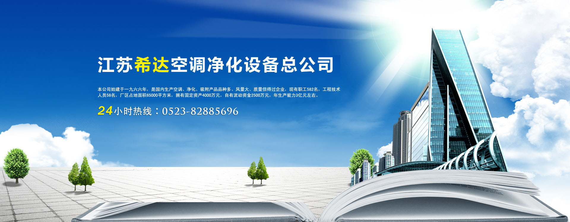 位于江蘇沿江開發(fā)地段,上海浦東開發(fā)區(qū)的輻射帶,交通、信息十分便捷,總公司下設(shè)專業(yè)分公司:靖江希達環(huán)保空調(diào)凈化設(shè)備有限公司、江蘇希達中央空調(diào)有限公司、揚子空調(diào)聯(lián)合工程公司。